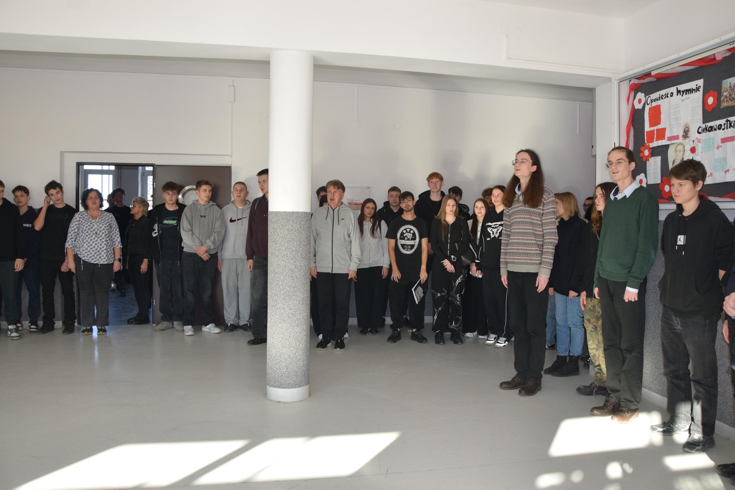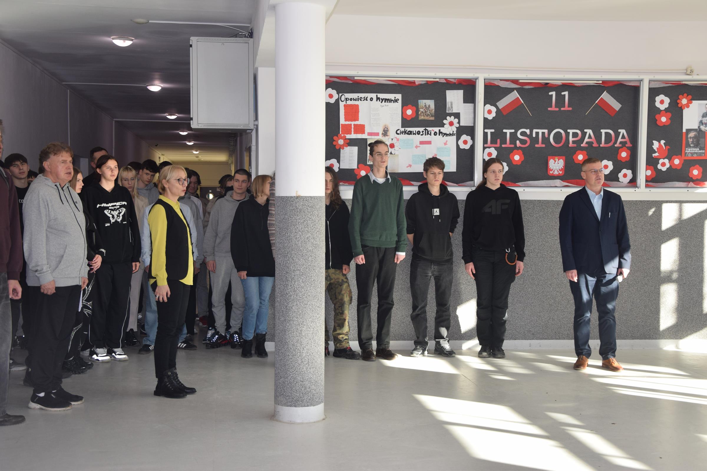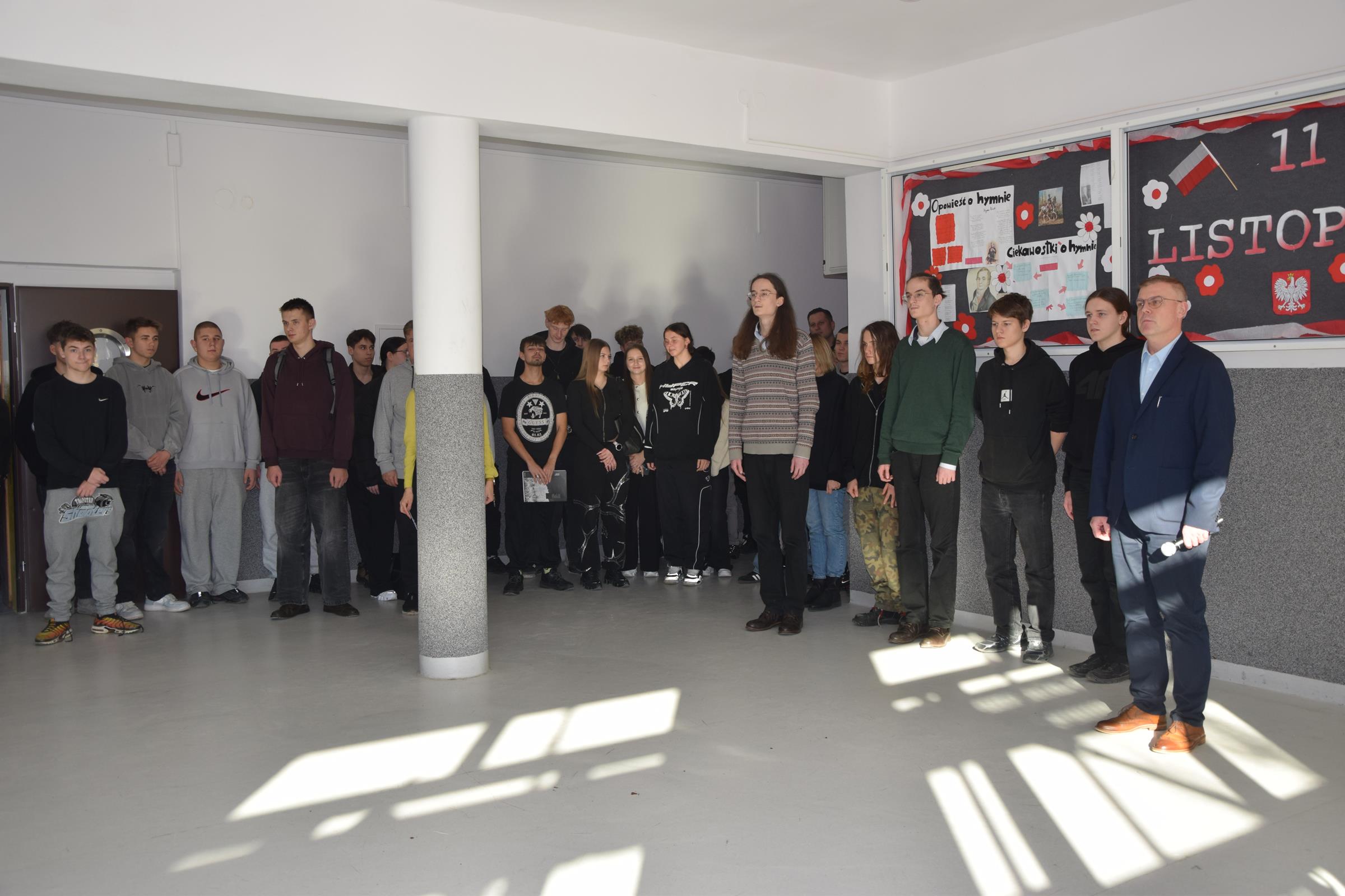 O godzinie 11:11 cała społeczność szkolna – uczniowie, nauczyciele oraz pracownicy – zebrali się, by wspólnie odśpiewać cztery zwrotki „Mazurka Dąbrowskiego”. Uroczysty nastrój podkreślały nowe biało-czerwone dekoracje, flagi narodowe oraz kotyliony przygotowane przez uczniów.