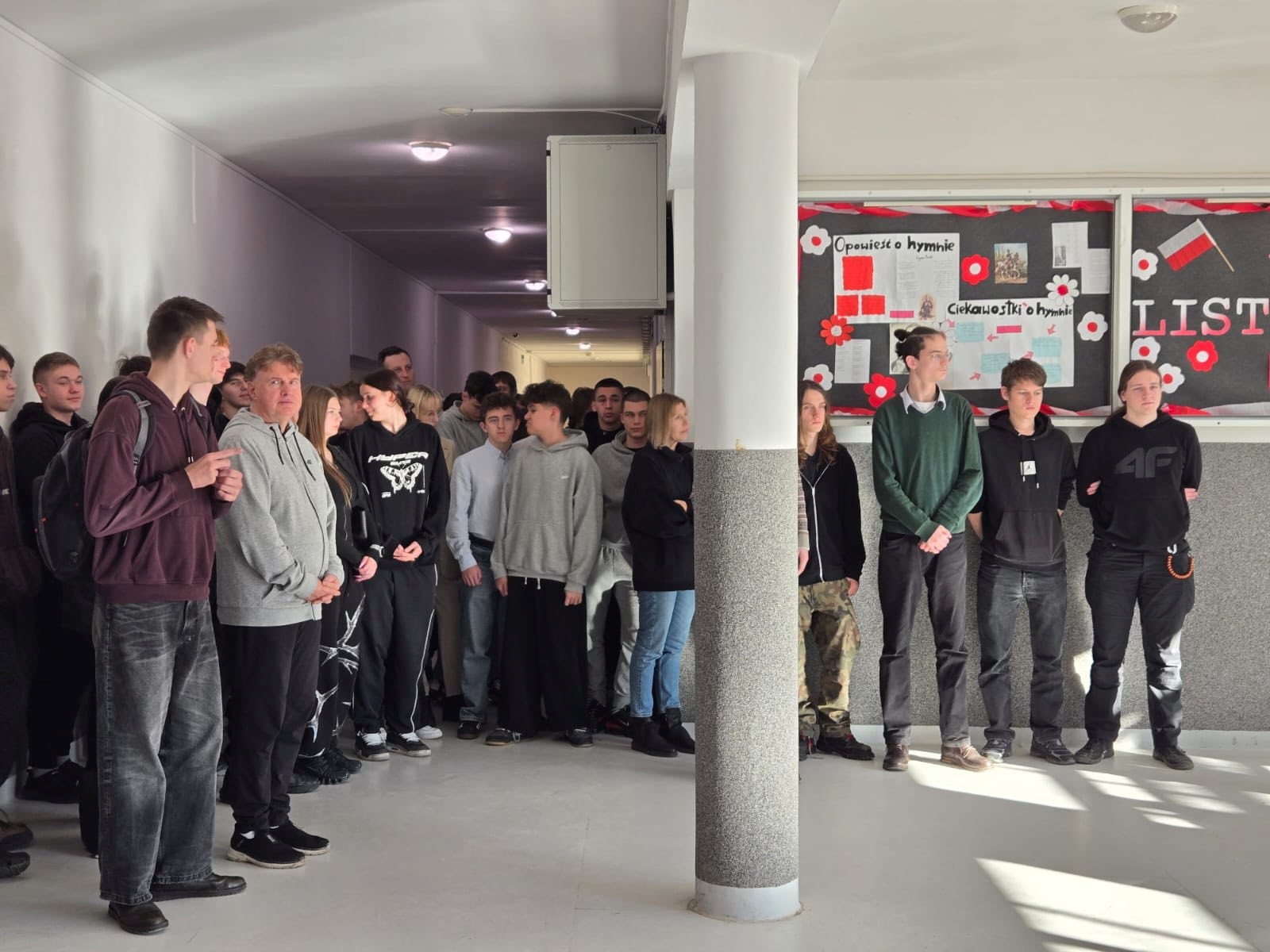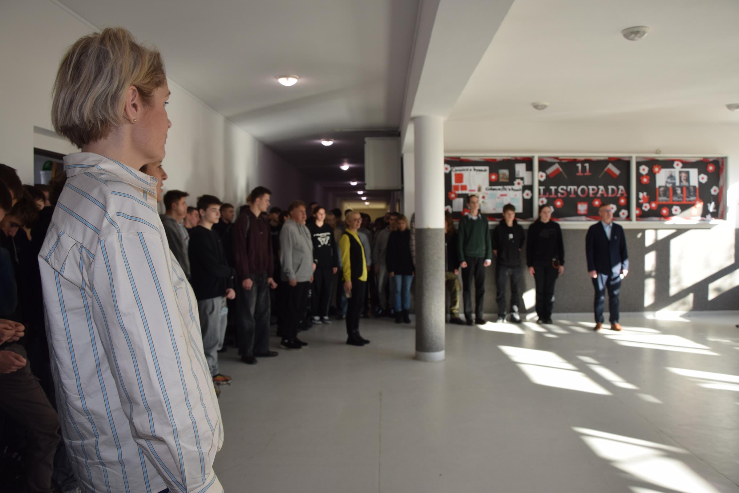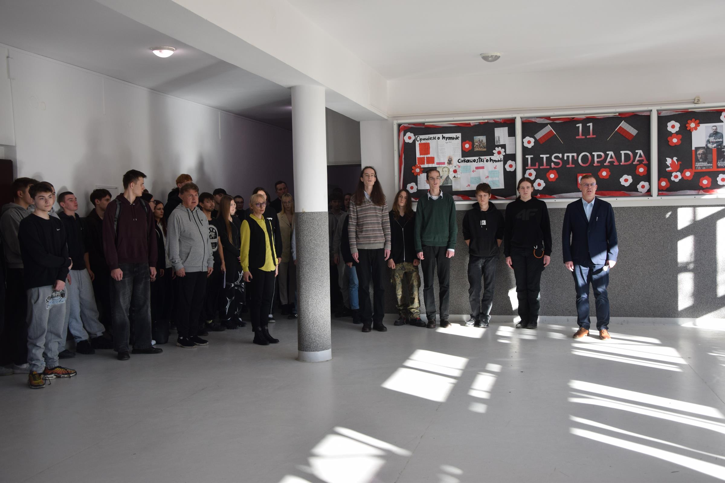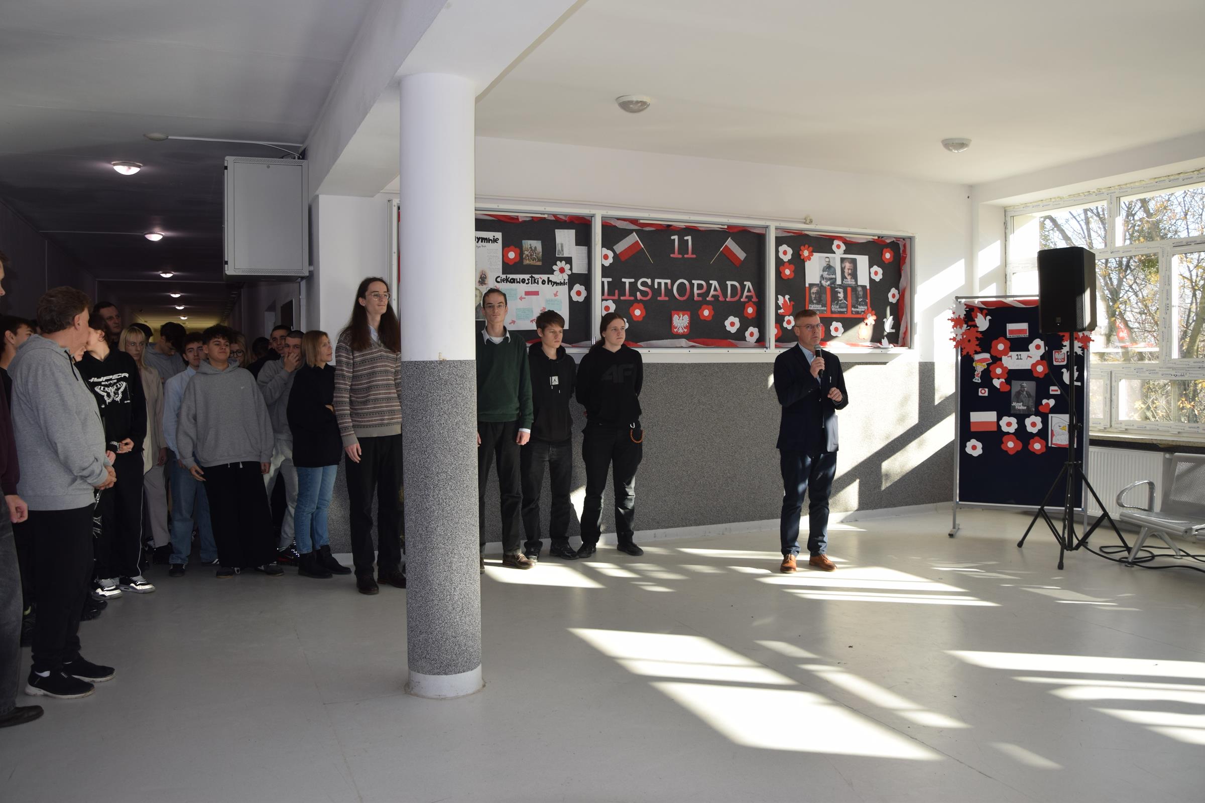 O godzinie 11:11 cała społeczność szkolna – uczniowie, nauczyciele oraz pracownicy – zebrali się, by wspólnie odśpiewać cztery zwrotki „Mazurka Dąbrowskiego”. Uroczysty nastrój podkreślały nowe biało-czerwone dekoracje, flagi narodowe oraz kotyliony przygotowane przez uczniów.